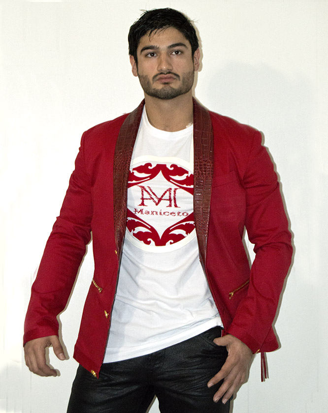 - Three embossed gold ManicetoPpF Logo front buttons closure